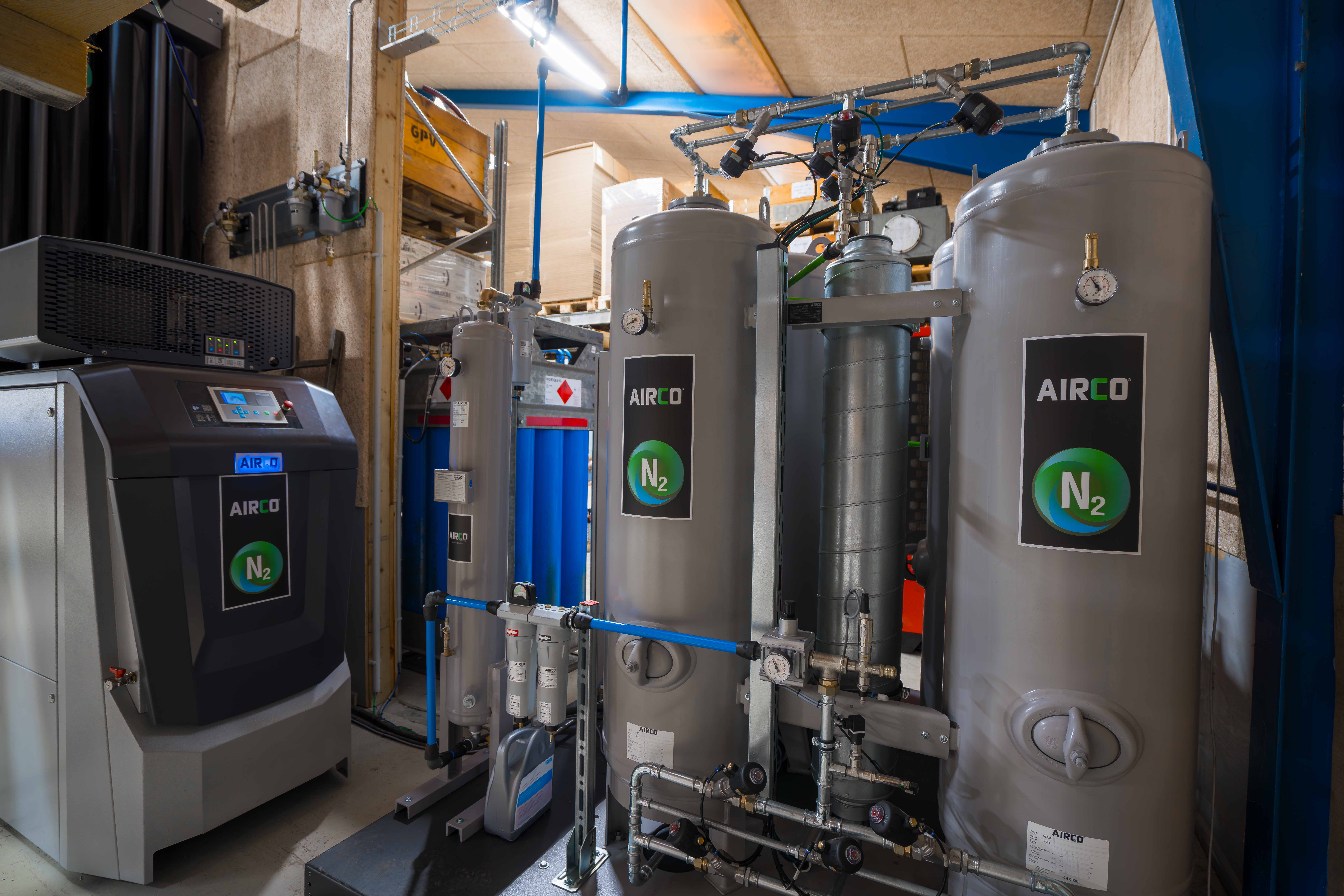 Nitrogengassen bruges i virksomhedens laserskærer. Før blev den leveret med tankbil hver uge. Nu bliver gassen produceret direkte på adressen, og den store udvendige tank kan fjernes.